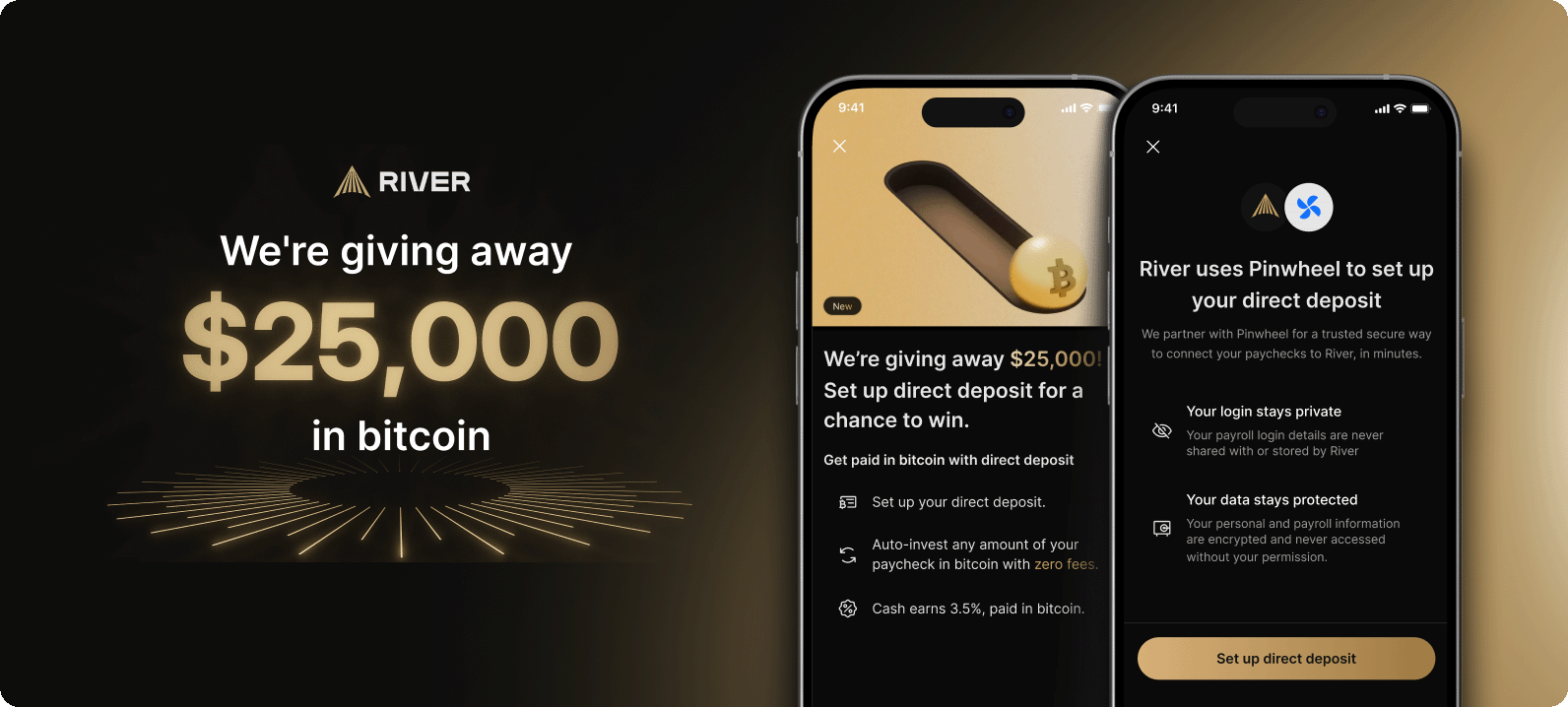River is also running a sweepstakes bonus open to all eligible clients who set up direct deposit and receive their paychecks to their River account. Clients earn additional entries by referring friends or family for a chance to win $5,000 in bitcoin with $25,000 in total prizes.